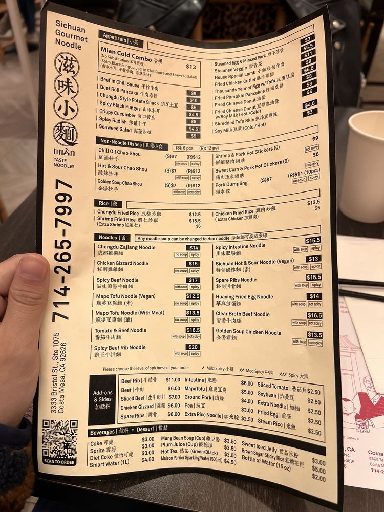 The atmosphere is inviting, and the QR code ordering system adds a modern twist. Patrons rave about the unique combinations and the perfectly balanced spices, making Mian Sichuan Gourmet Noodles a must-visit for any noodle lover.